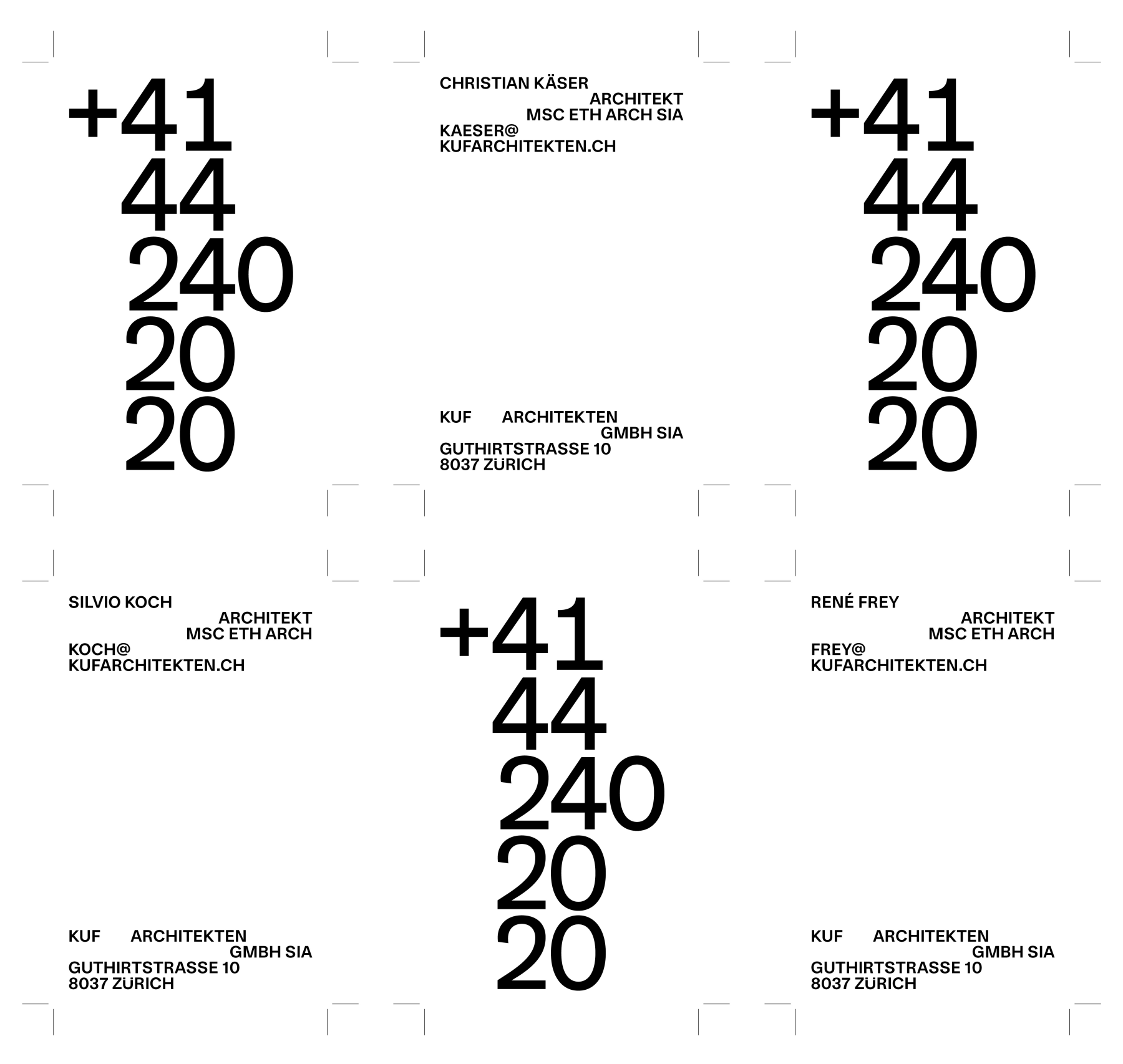 We created the identity and website for KUF Architekten using our custom Futter Grotesk typeface tailored to their needs. The typeface brings a clean, modern feel that matches their architectural approach. The website uses an asymmetrical grid and bold uppercase type to give a strong, clear presence. Smooth transitions and plenty of white space keep the focus on their projects. The result is a simple, effective platform that shows KUF Architekten’s work and approach without unnecessary distractions.
