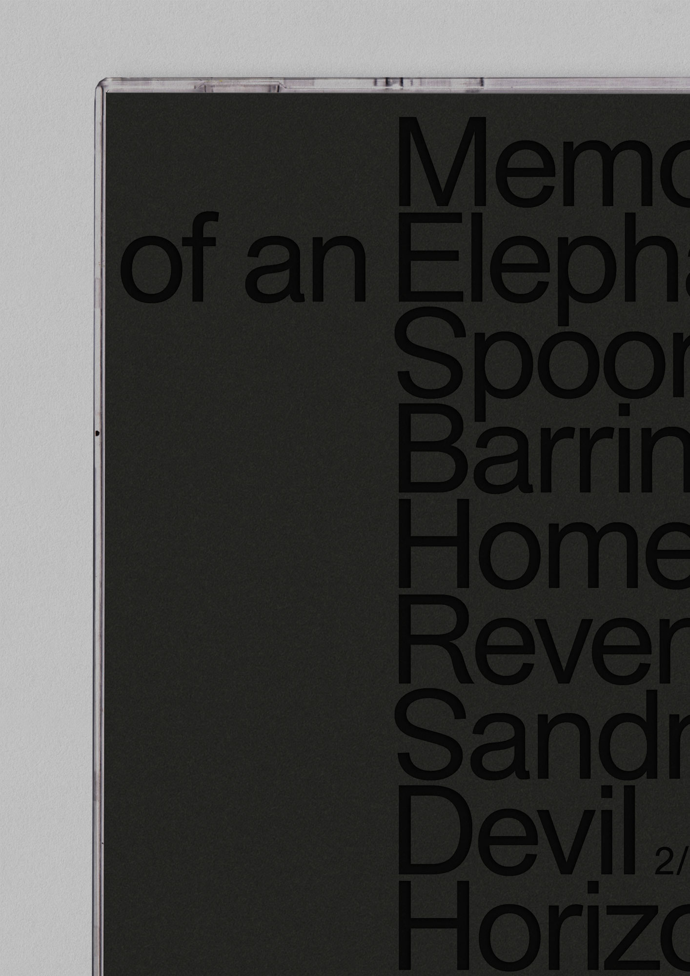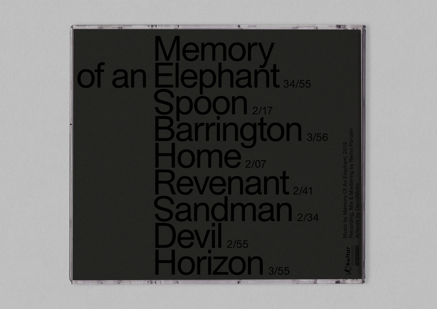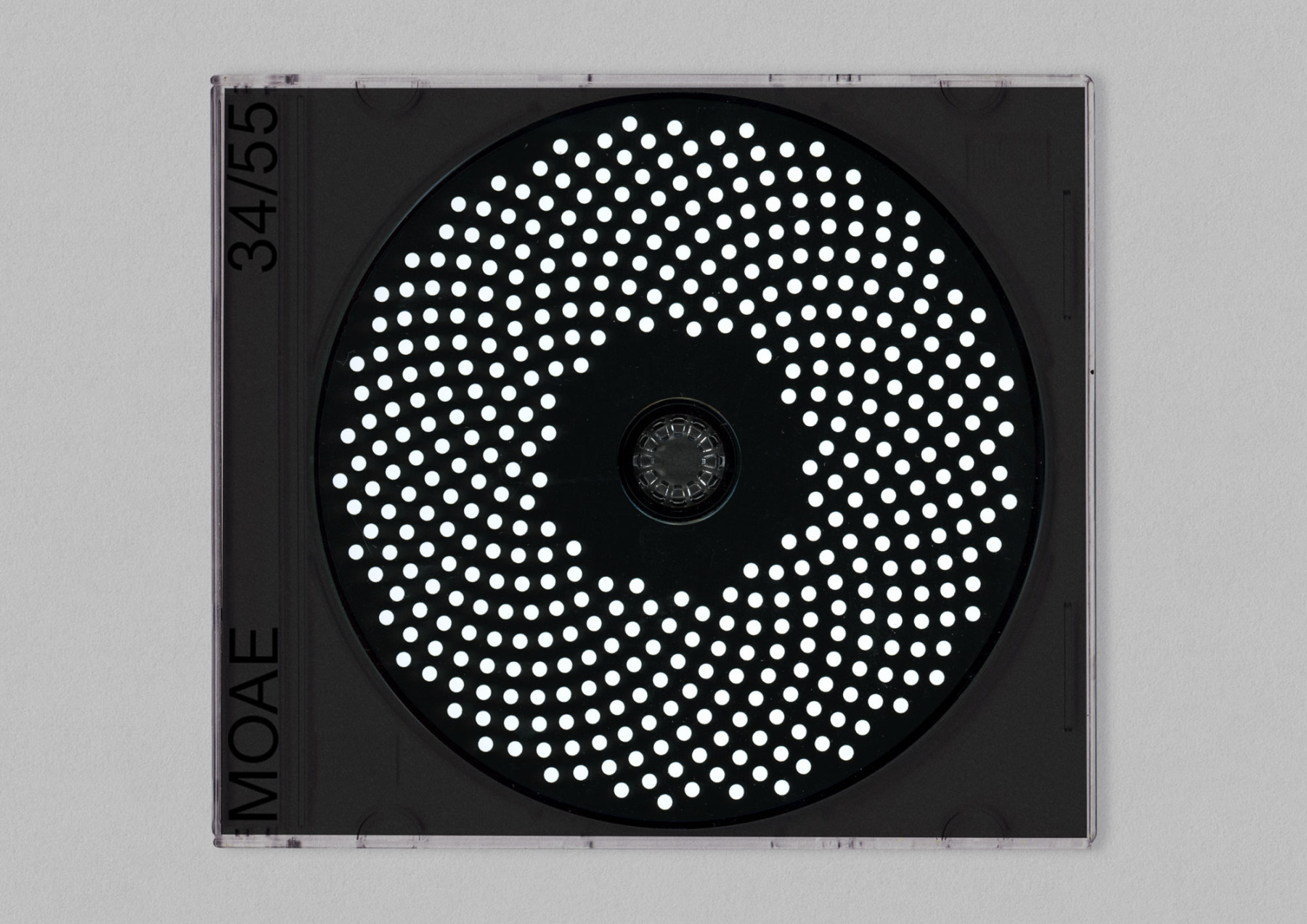 34/55 by Memory of an Elephant is a cryptic title we pushed further into abstraction—a visual code far from folk’s familiar ground. The CD format felt like a relic, so we made an object to keep. A tactile Fibonacci spiral, printed on the black disc, turns music into touch—a quiet invitation beyond sound.